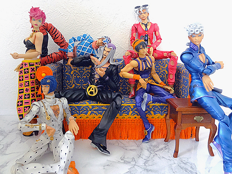 可動範囲に限界があって、なかなかうまくポーズをつけられないのが残念です。地べたに座らせることができないので、ブチャラティは片足引っこ抜いて置いてある状態です。