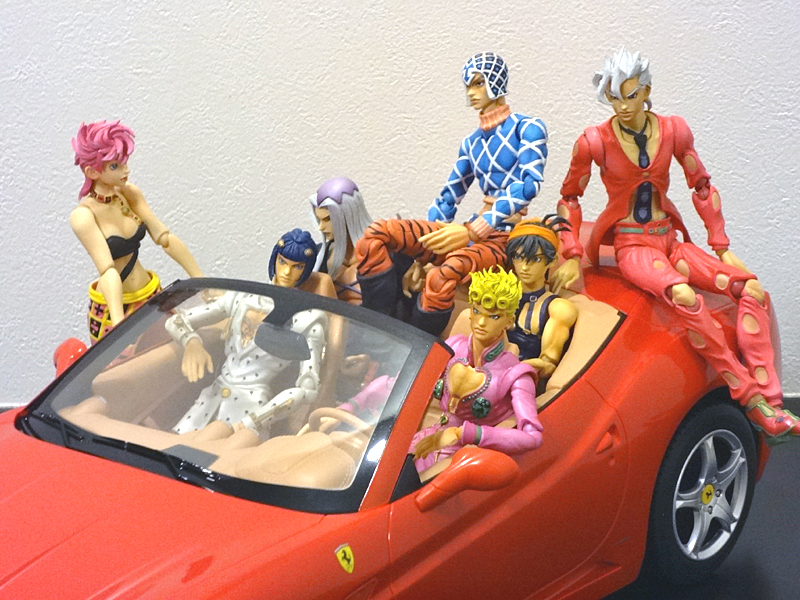 荒木先生のラフ画の通りにミスタの横にトリッシュ置きたかったけど、狭くてムリでした。フーゴはラフ画にはいなかったので、テキトーに配置。
